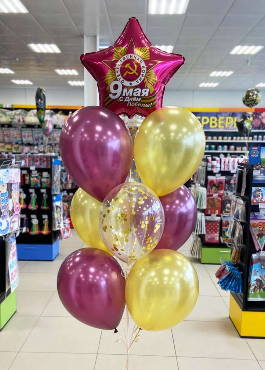 Шар Звезда фольга 9 Мая С Днем Победы рубин 46 см 1 штШар латексный Кристалл прозрачный с декоративным наполнением конфетти круги золотые 30 см 3 шт