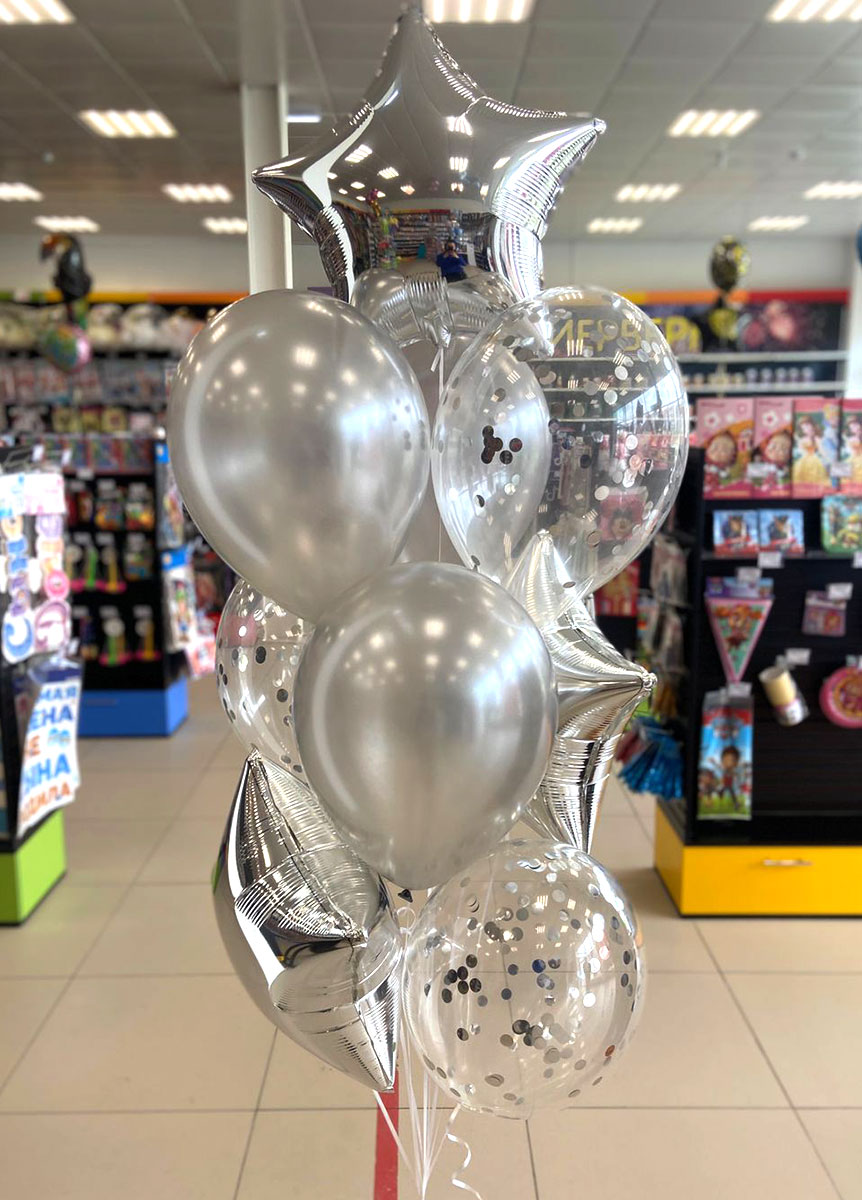 Букет Ассорти из шаров Звезды серебро 9 шт