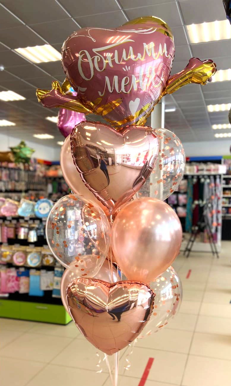 Шар фольга Фигура Сердце Обними меня 1штШар фольга без рисунка Сердце розовое золото (FM) 40 см 3 шт