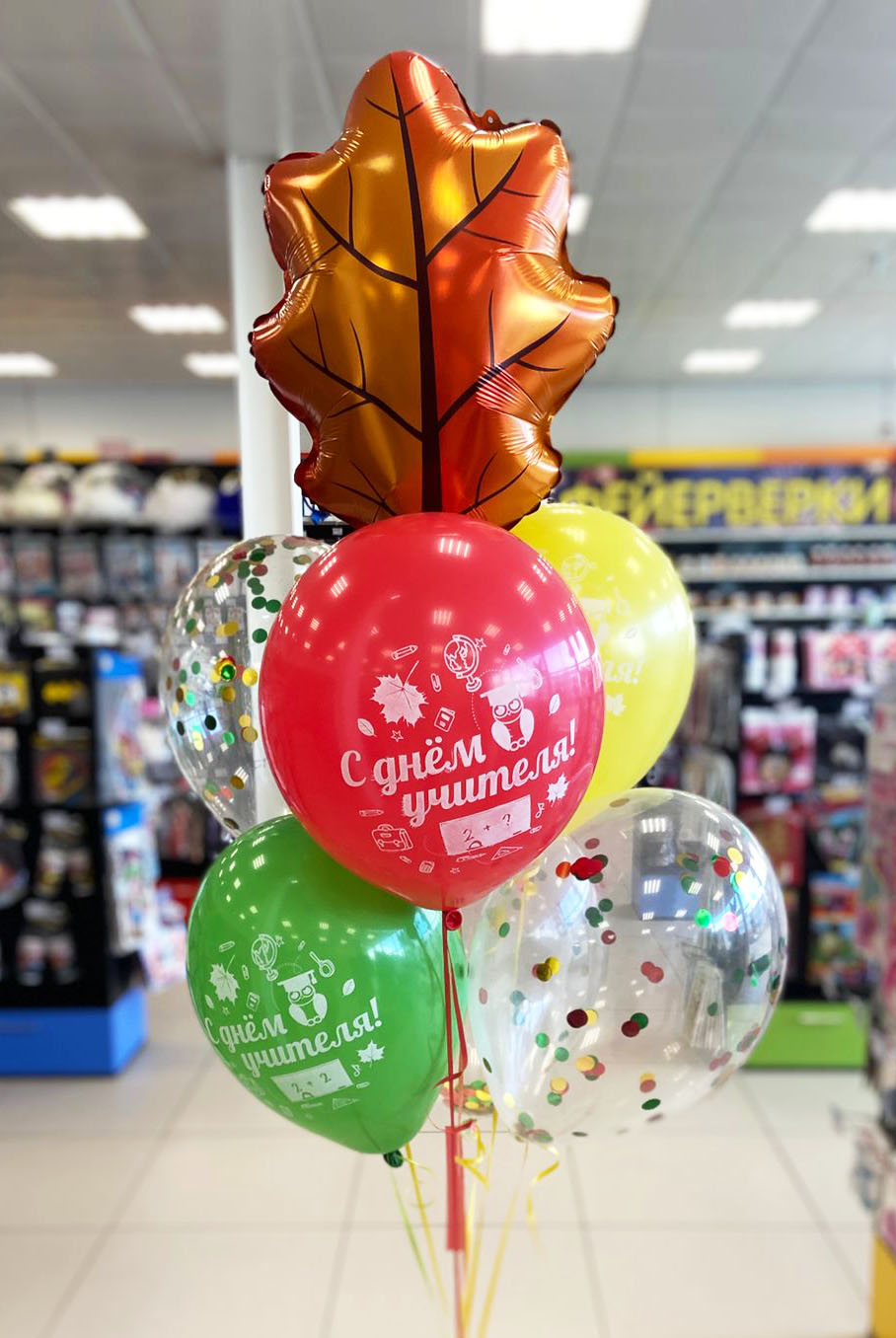 Шар фольга Фигура Лист осенний 69 см 1 штШар латексный с рисунком День учителя 30 см 3 шт