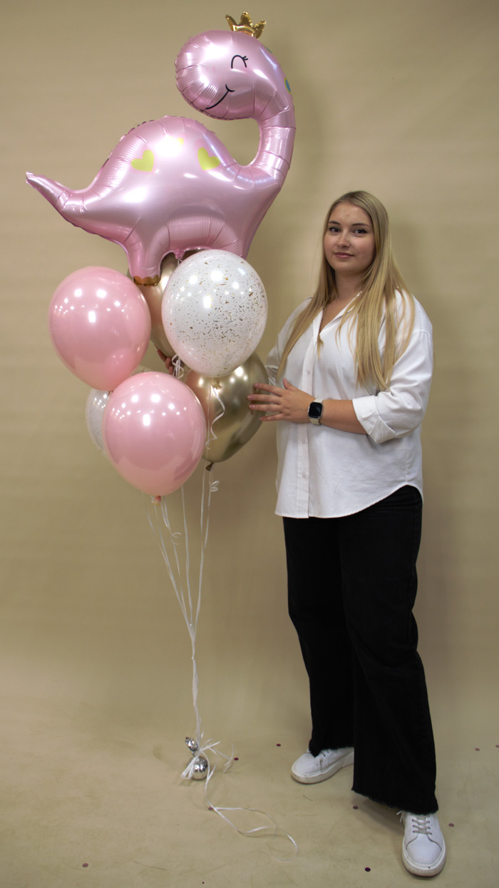 ----Букет с шарами Дабл Стафф Динозаврик в короне 7 шт