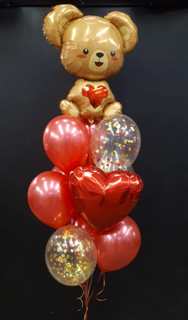 Шар фольга Фигура Мишка плюшевый с сердцем (901856) 1 штШар фольга без рисунка Сердце красное (FM) 40 см 1 шт