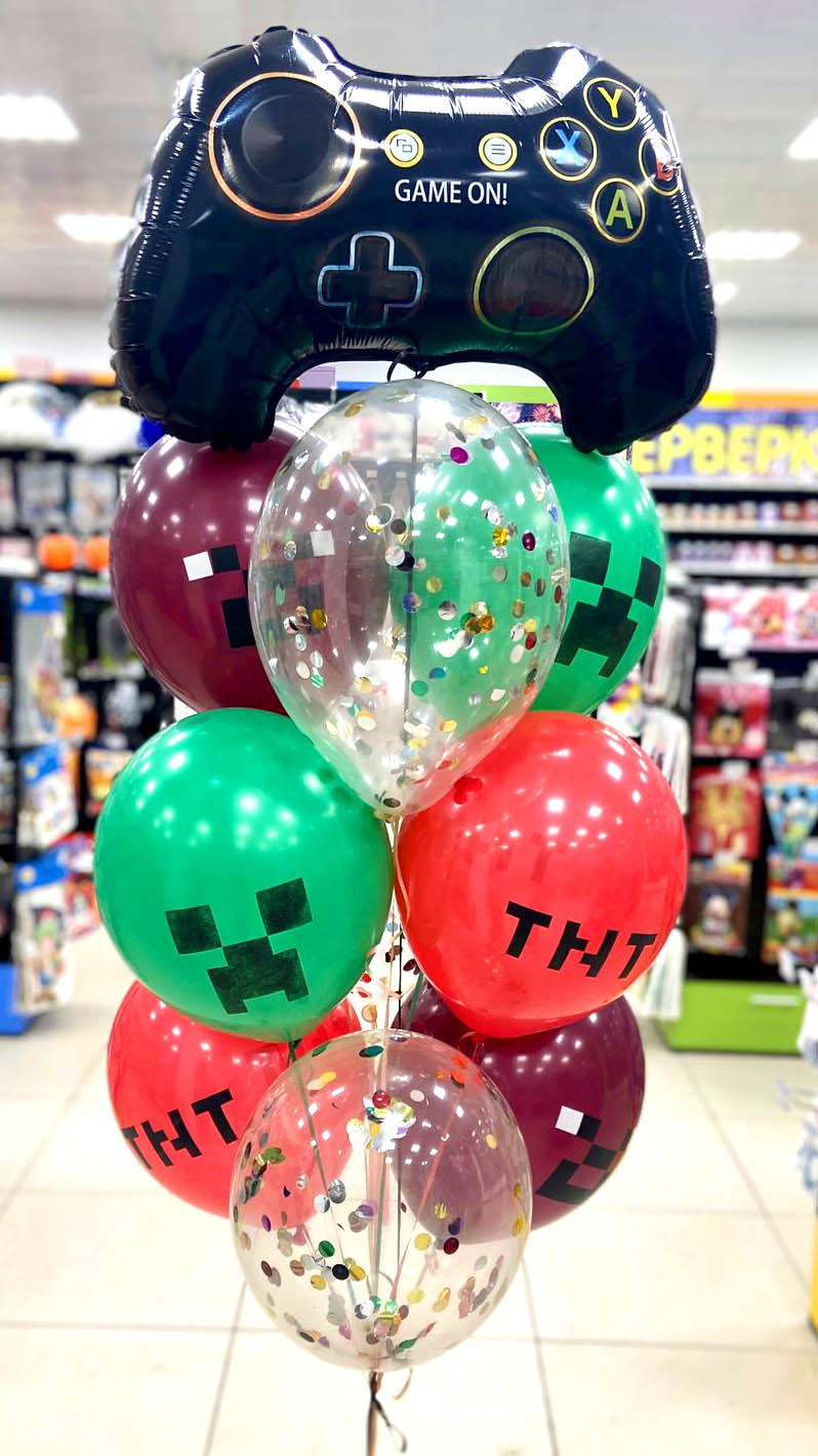 К Шар фольга Фигура Джойстик Геймпад 1 штШар латексный Кристалл прозрачный + конфетти разноцветное 3 шт
