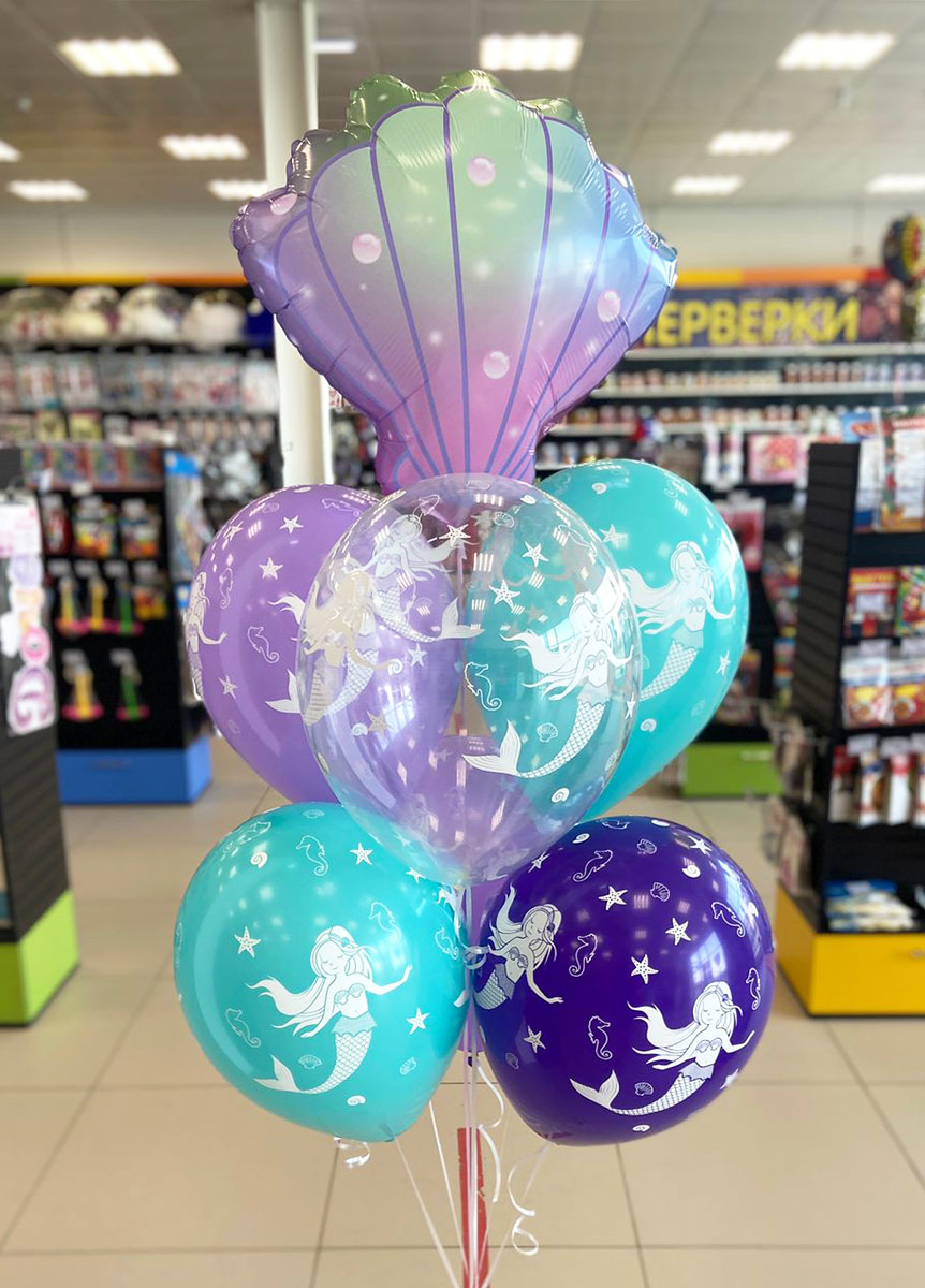 Шар фольга Фигура Ракушка морская 1 штШары латексные с рисунком Русалочка кристалл (150680) 6 шт