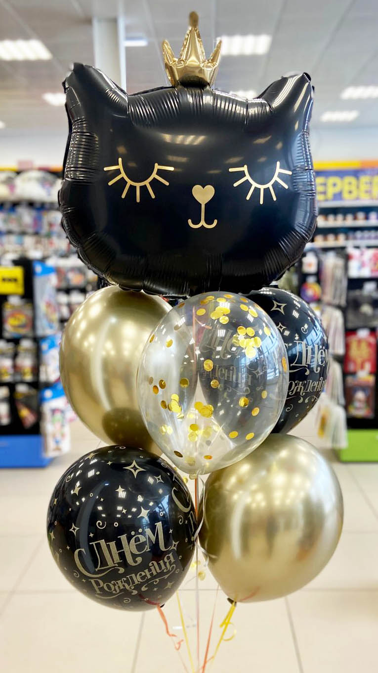 Букет С Днем Рождения Кошка в короне черная 7 шт