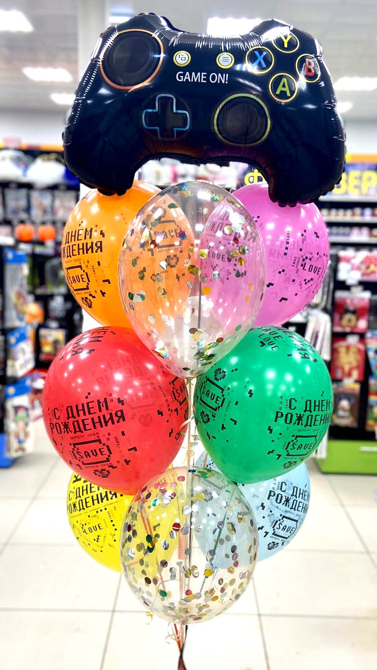 К Шар фольга Фигура Джойстик Геймпад 1 штШар латексный Кристалл прозрачный + конфетти разноцветное 3 шт