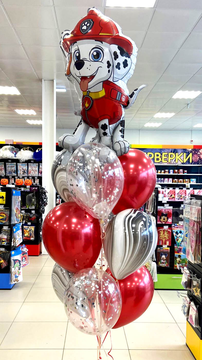 Шар фольга Фигура Щенячий Патруль Маршал 1 штШар латексный Кристалл прозрачный с декоративным наполнением круги конфетти серебро 30 см 3 шт