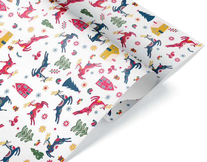Бумага глянцевая Олени новогодние 70*100 см 1 шт