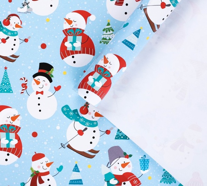 Бумага упаковочная глянцевая Снеговики 100*70 см 1 шт