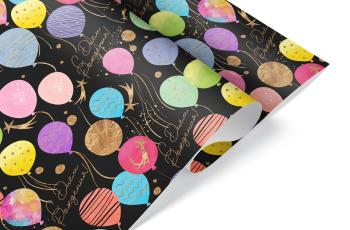 Бумага упаковочная Воздушные шары на черном 70*100 см 1 шт