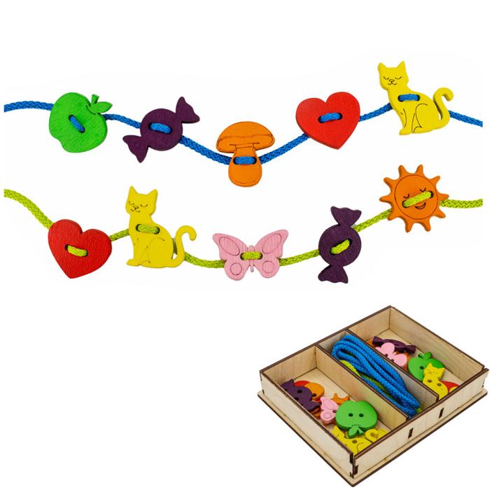 Деревянная шнуровка Пуговки для девочек 3+ 1 шт