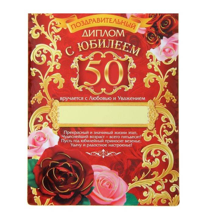 Диплом- магнит С Юбилеем 50 лет 10*13 см 1 шт