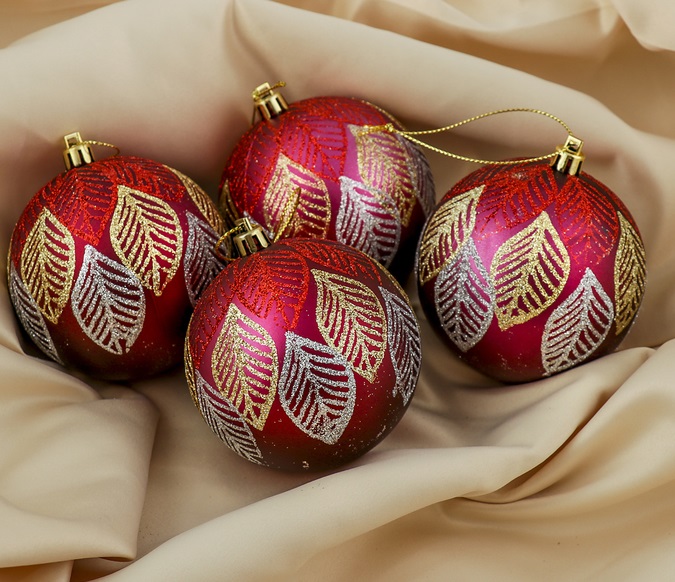 Набор шаров Листья красный 8 см 4 шт