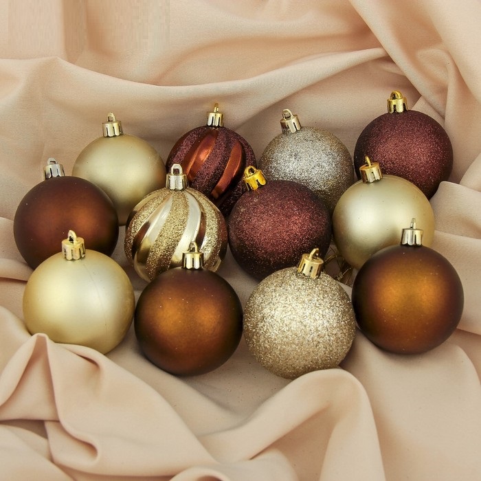Елочное украшение Улыбка кофе с золотом 6 см 12 шт
