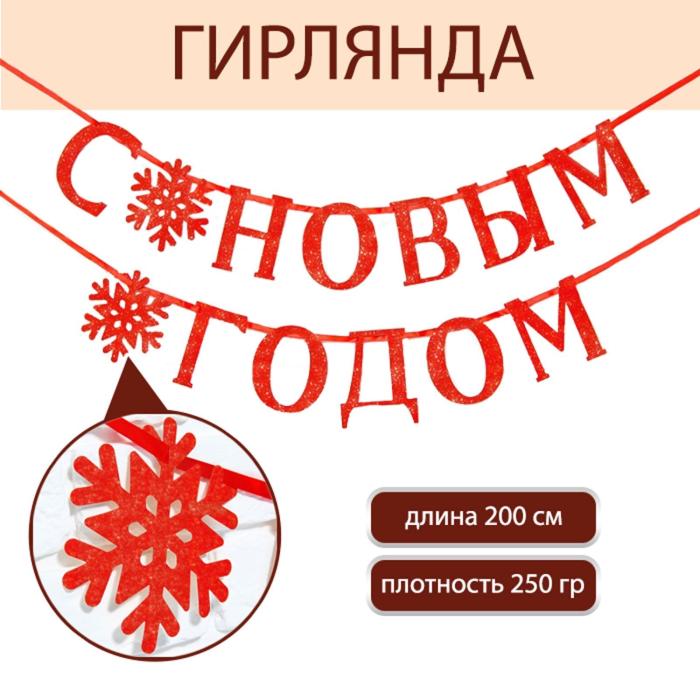 Гирлянда С Новым годом красная 200 см 1 шт