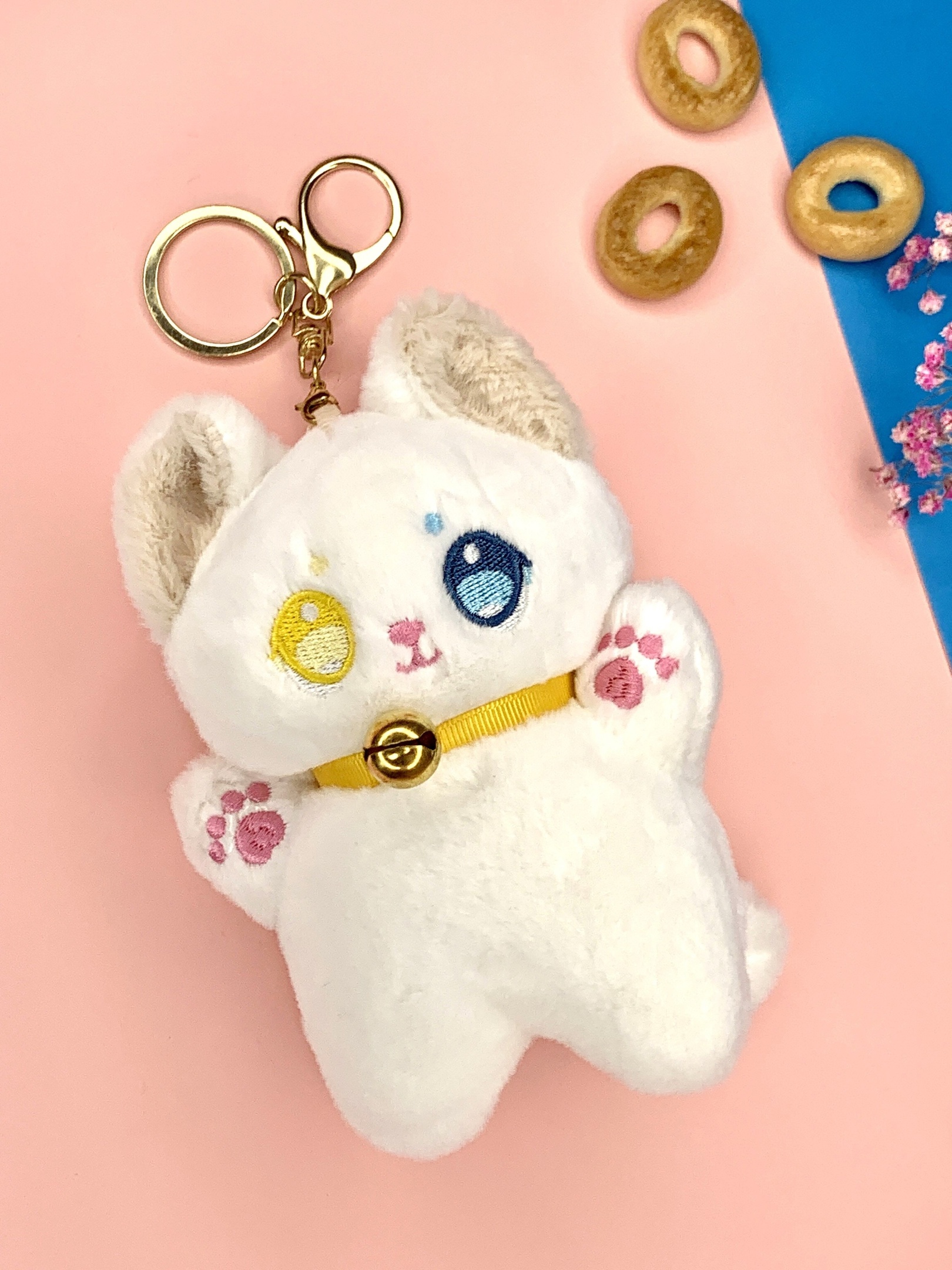 К Брелок Котик белый/черный микс 13 см 1 шт