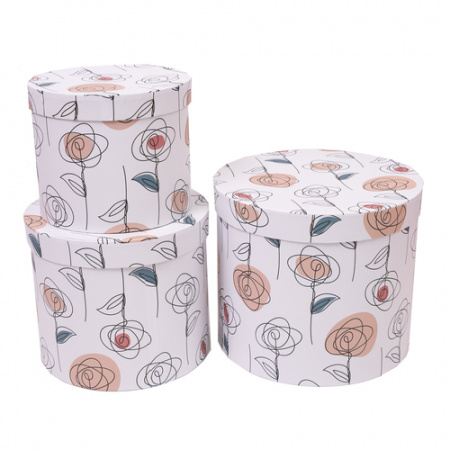 Коробка круг Нюдовые цветы №2 20*17 см 1 шт