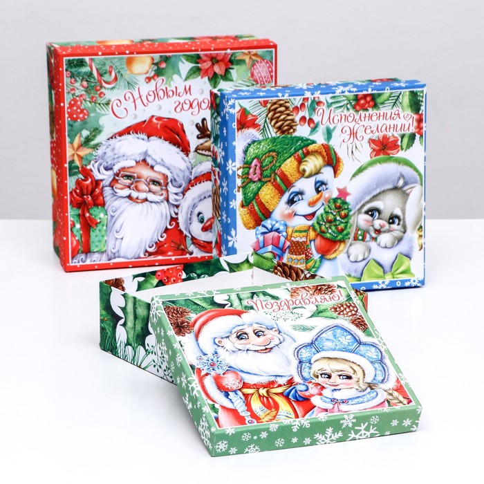Коробка квадрат Новогодние герои №3 19*7,5 см рис микс 1 шт