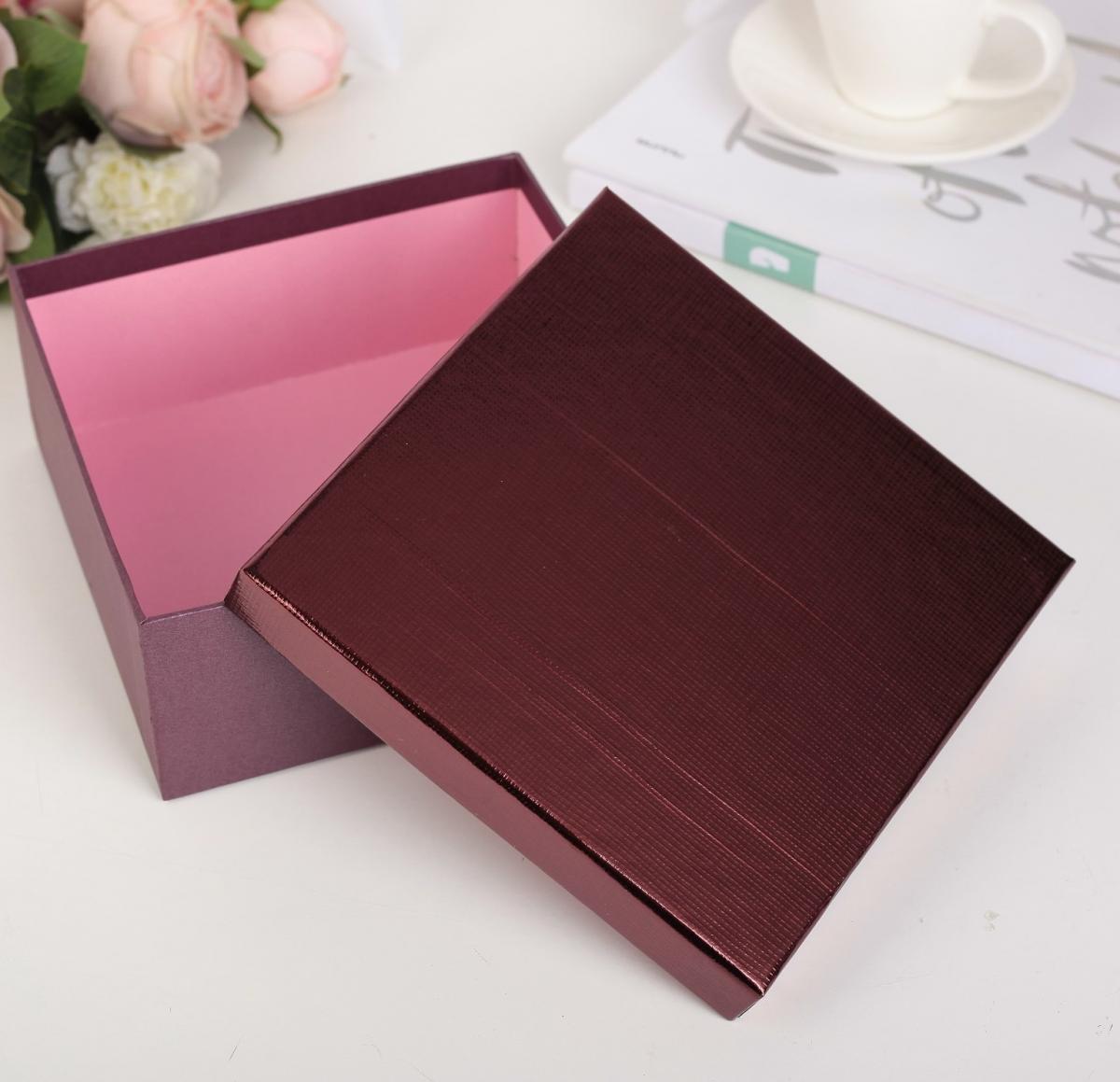 Коробка квадрат Однотон бордо №1 18*18*8 см 1 шт