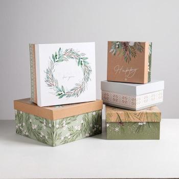 Коробка квадрат Зимний №5 22*22*12 см рис микс 1 шт