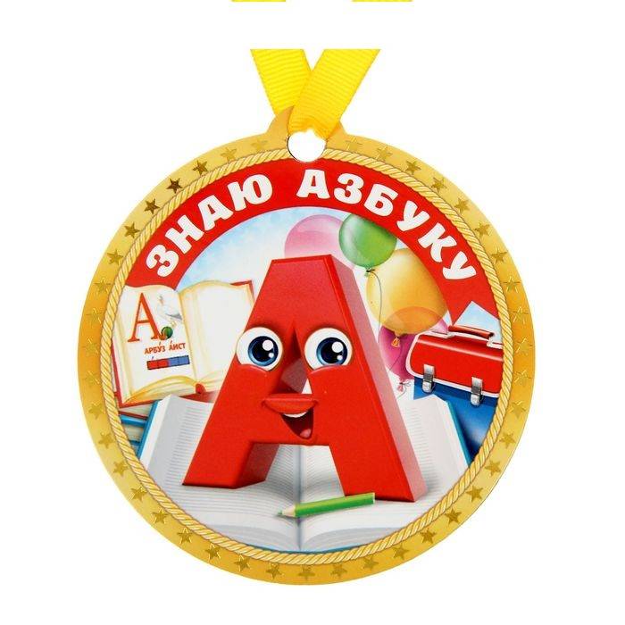 -----Медаль на магните Знаю азбуку А 8,5*9,2 см 1 шт