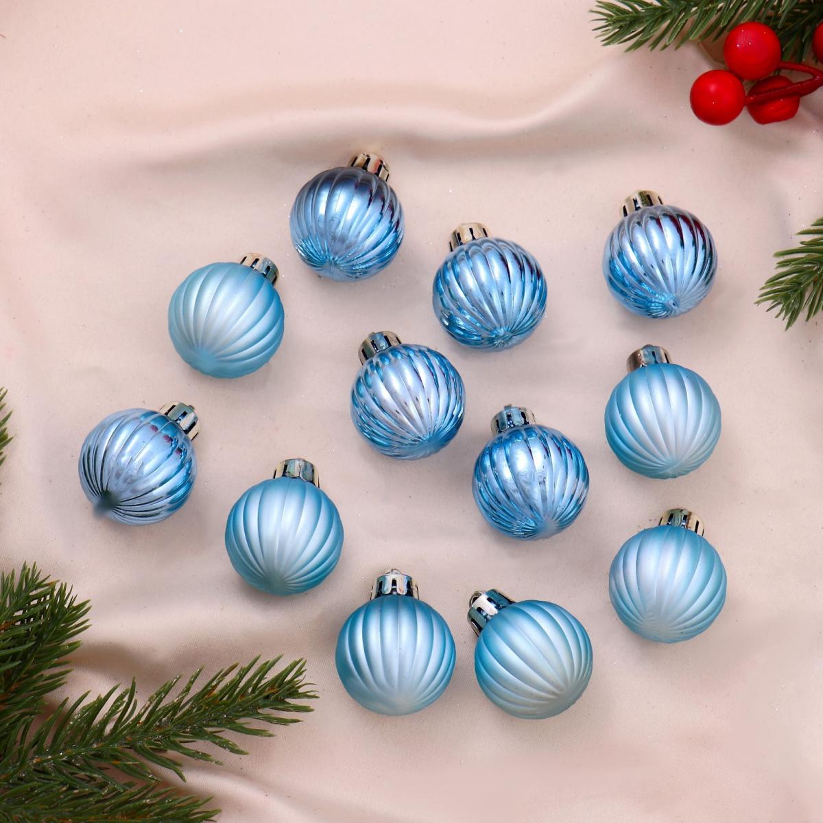 Набор шаров Беата полоски голубой 3 см 12 шт