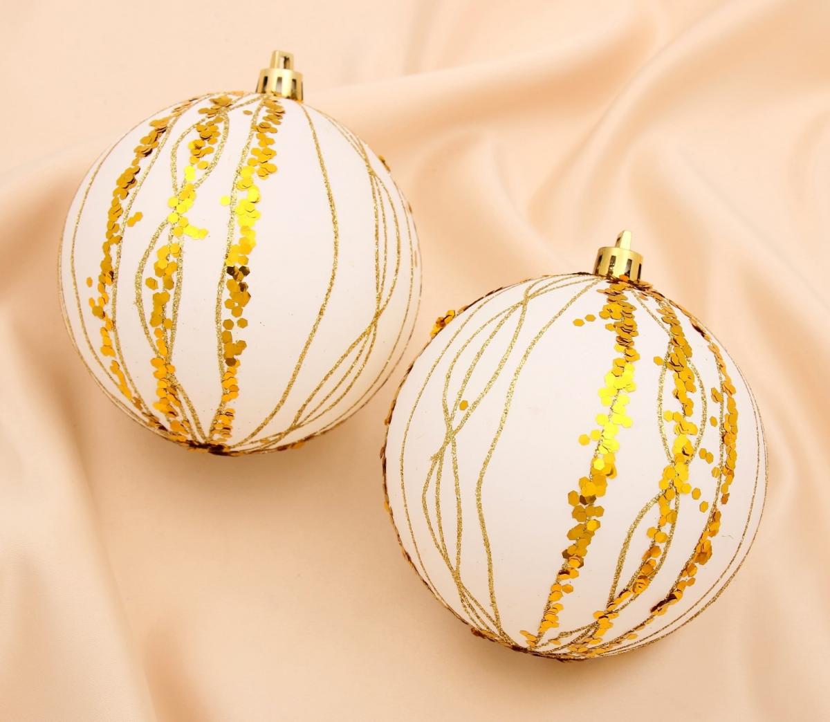 Набор шаров Орбита бело-золотой 10 см 2 шт