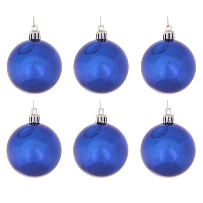 Набор шаров пластик синий глянец d-6 см 6 шт