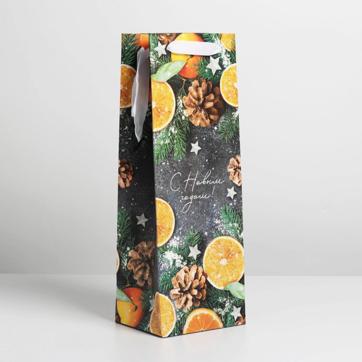 Пакет для бутылки крафт Новогоднее настроение 13*36*10 см 1 шт