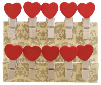 Прищепки для декора Сердечки красные 3,5 см 10 шт