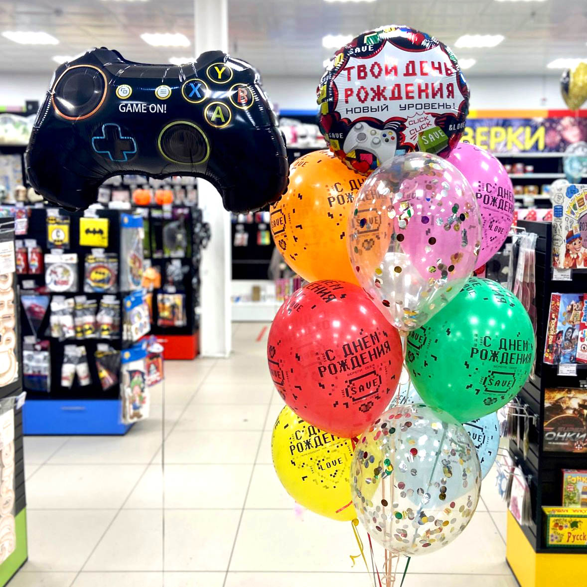 ----Сет из воздушных шаров Твой День Рождения! Пиксели 11 шт