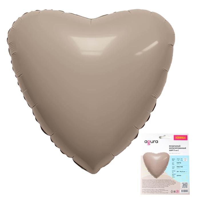 Шар фольга без рисунка Сердце 30" латте сатин (Ag)