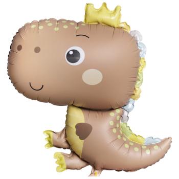 Шар фольга Фигура Динозаврик в короне бежевый (ВЗ)