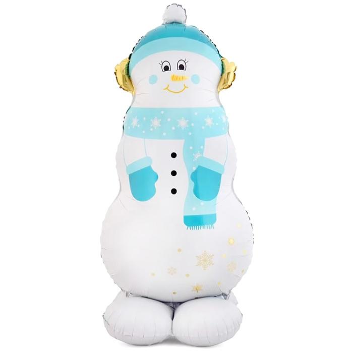Шар фольга Фигура Под воздух Снеговик голубой шарф 1 шт
