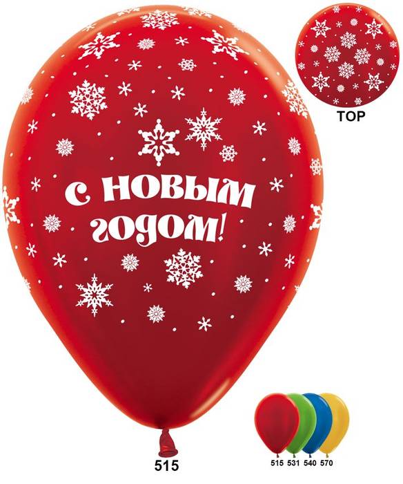 Шар S 12" Металлик ассорти С Новым годом 100 шт