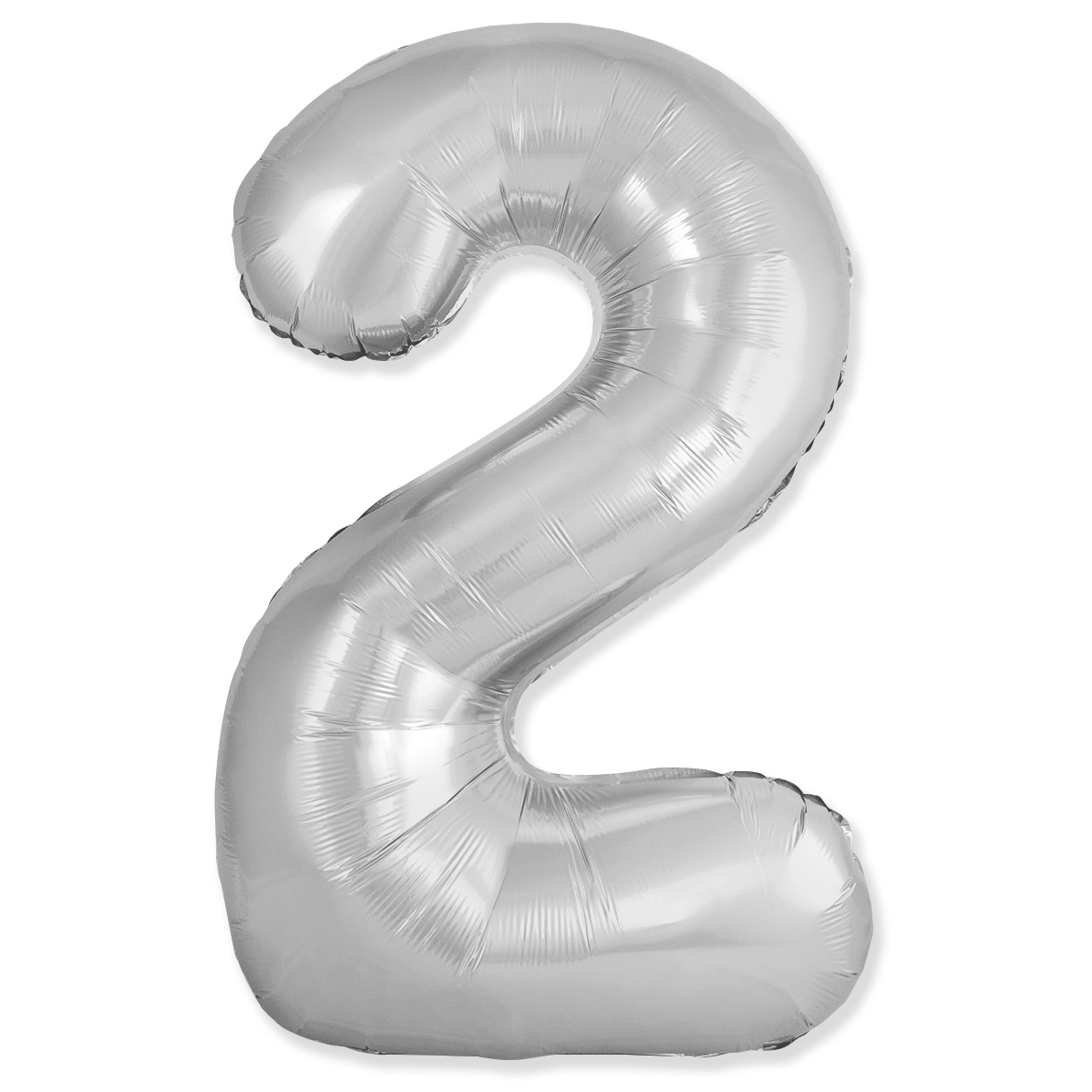 Шар Цифра 2 серебро Слим 100 см (FM)