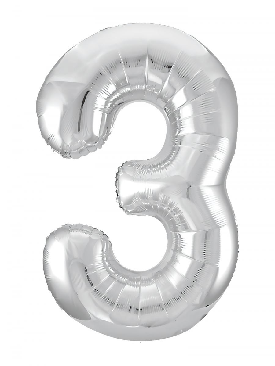Шар Цифра 3 серебро Слим 102 см (Ag)