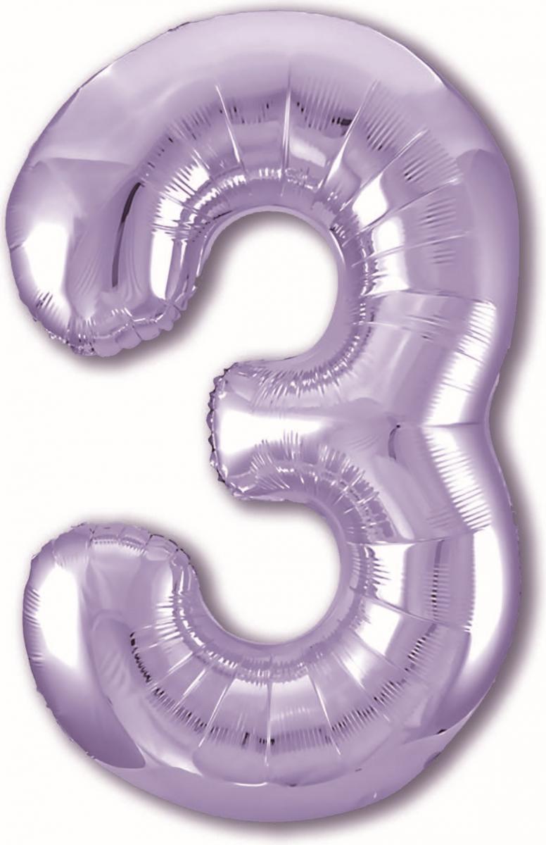 Шар Цифра 3 сиреневый Слим 102 см (Ag)