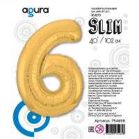 Шар Цифра 6 золото Слим 102 см (Ag)