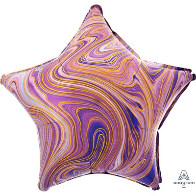Шар Звезда фольга 19" Мрамор фиолетовый (AN)