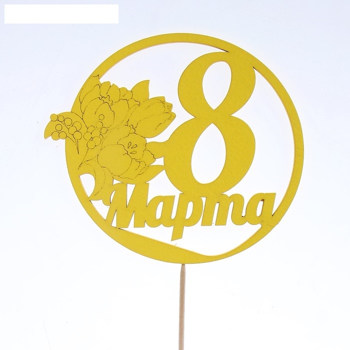 Топпер 8 марта в круге желтый 14*12,5 см 1 шт