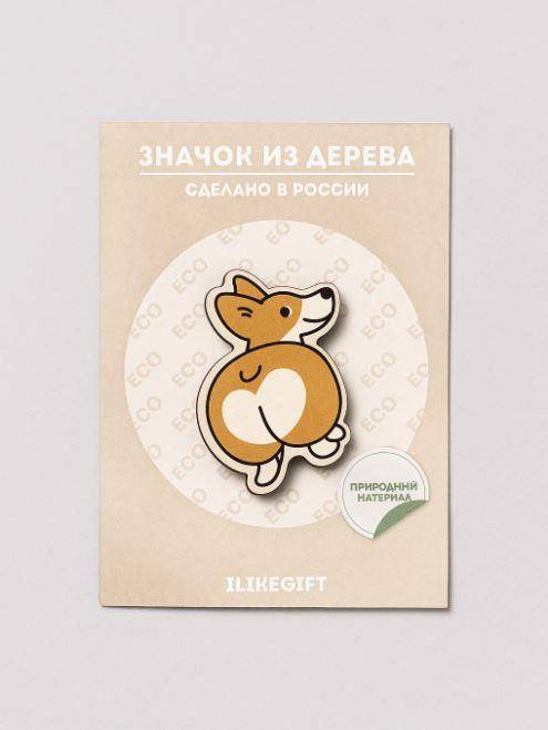 Значок Корги попка дерево 1 шт